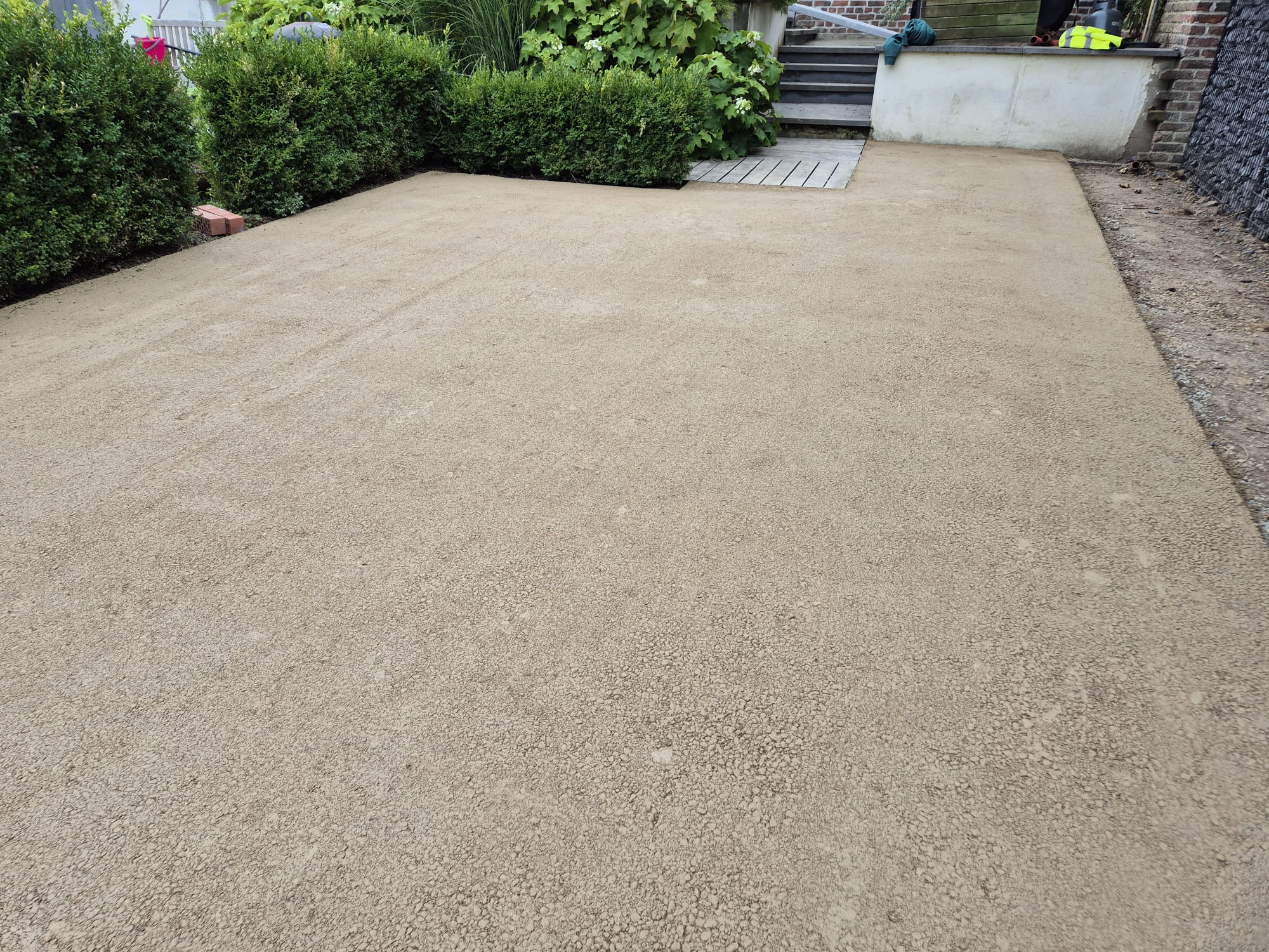 elle forme une surface stable, esthétique et perméable — 1 à 2 cm au-dessus
